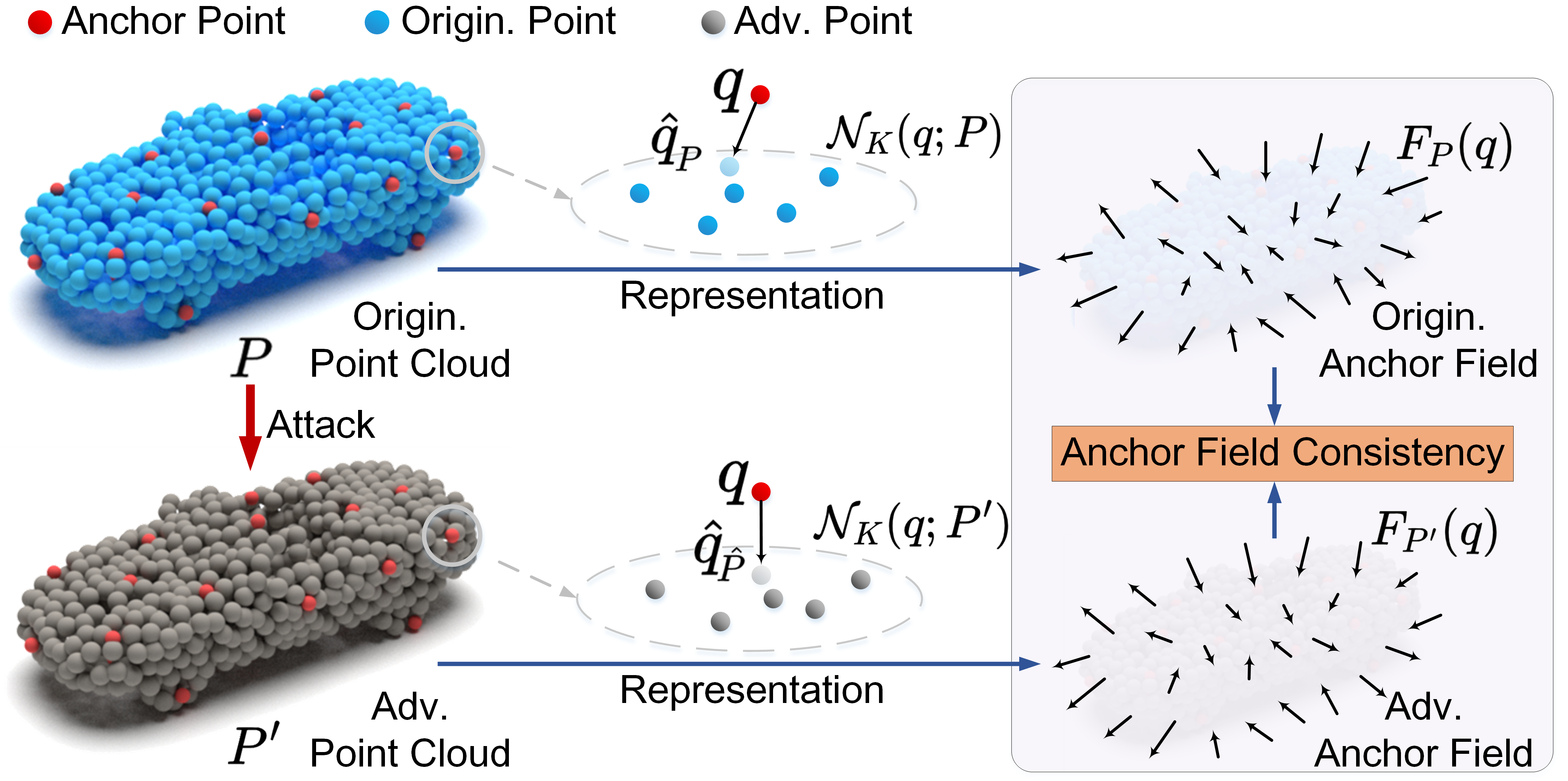 Anchor Field Consistency for Imperceptible Adversarial Attacks on 3D Point Clouds Keke Tang, Zhenxing Cao, Weilong Peng, Xiaofei Wang, Peican Zhu, Zhihong Tian International Conference on Acoustics, Speech, and Signal Processing (ICASSP), 2026 |